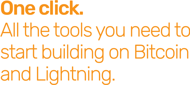 Welcome. Here you'll find an all-in-one cloud-based developer tool suite that simplifies building applications on the Bitcoin and Lightning networks. With one click, you can start your project right in your browser — no installation required. Plus, it's free to get started!
